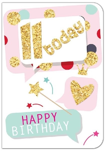 BURSDAGSKORT 11 ÅR - GLITTER GULL
