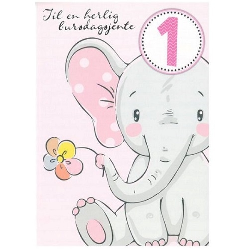 BURSDAGSKORT 1 ÅR JENTE - ELEFANT