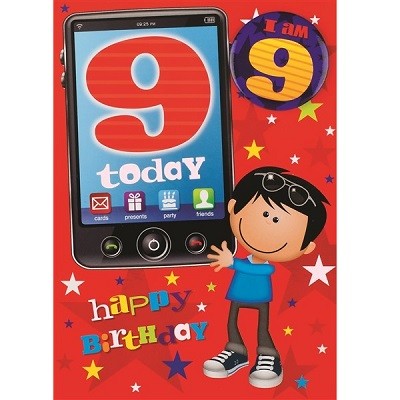 BURSDAGSKORT MED BUTTON GUTT 9 ÅR