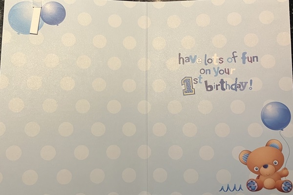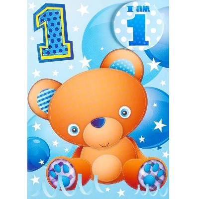 BURSDAGSKORT MED BUTTON GUTT 1 ÅR