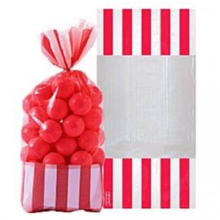 RØDSTRIPET CELLOFAN GODTEPOSER (10-pk)