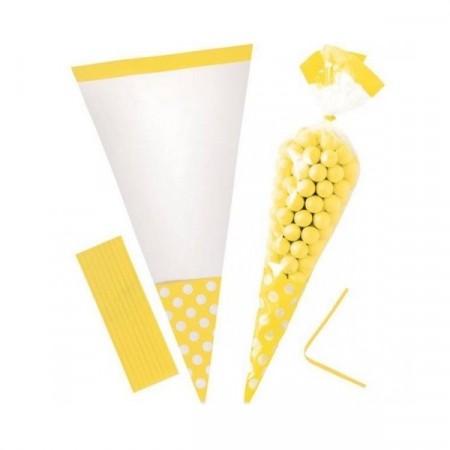 GULE POLKA DOT CELLOFAN GODTEPOSER (10-pk)