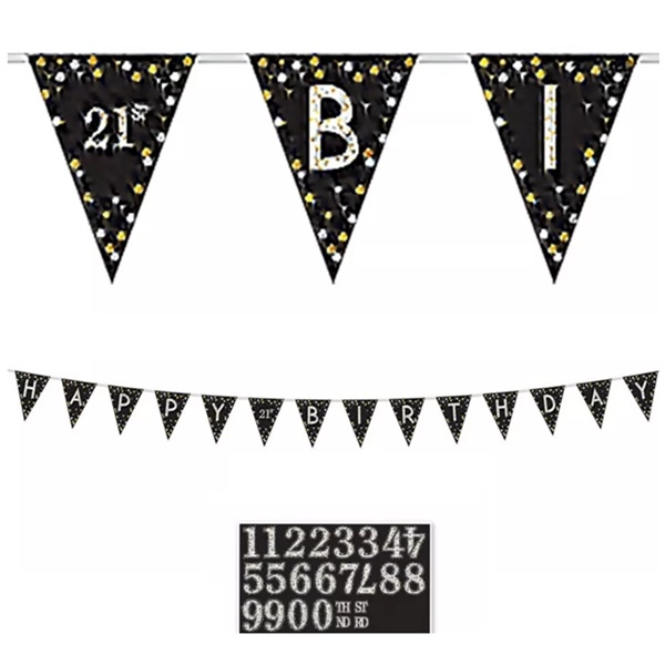 BLACK GLITZ HAPPY BIRTHDAY BANNER 13