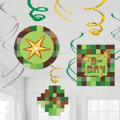 Pynt til bursdagsfeiring med virvel hengepynt dekorert med Minecraft motiv!