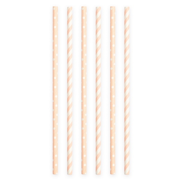 Lyserosa / hvite papirsugerør med en miks av striper og polka dot mønster